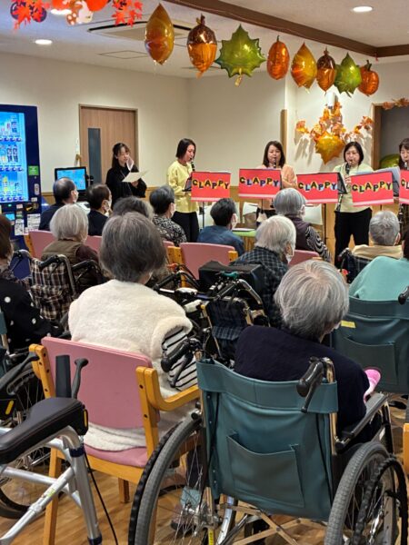 入居者様に合わせて懐メロを演奏してくださり、大変盛り上がりました。