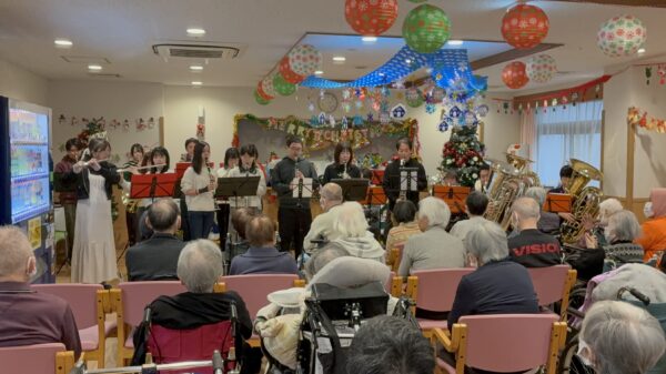 越谷市消防音楽隊の皆様が来てくださいました!!越谷市消防音楽隊.総勢22名の迫力ある演奏会でした。入居者様も大変盛り上がっていました。